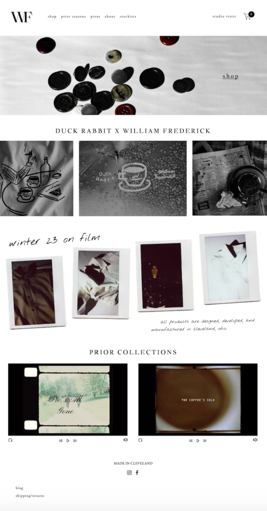 William Frederick is a Cleveland based clothing brand. This design expands on their current website design to introduce their upcoming collections.